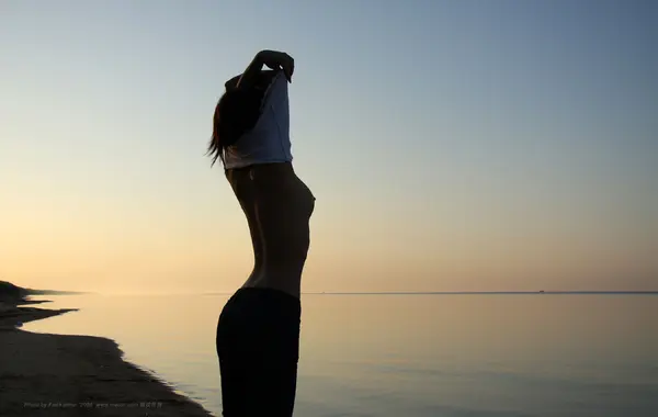 柳箐箐《白色背景前的美女》