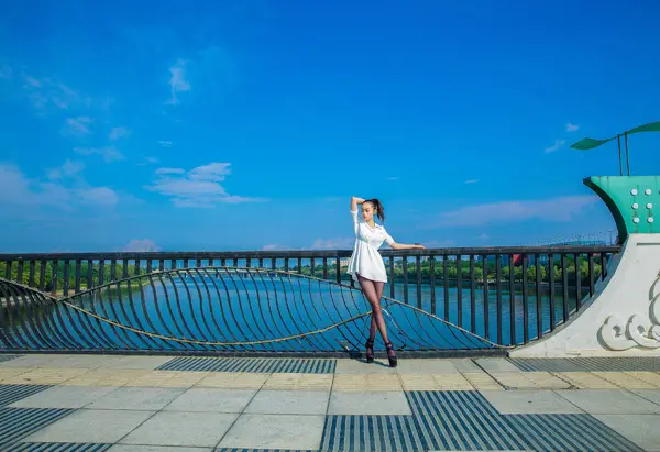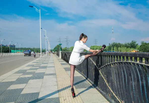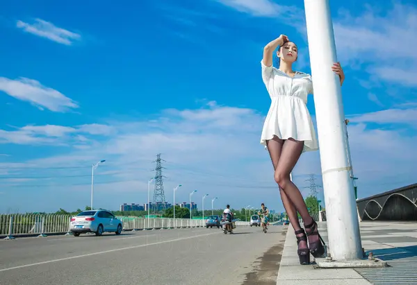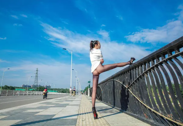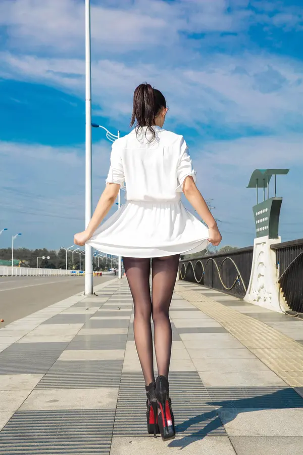 夜景外拍白色连体丝袜