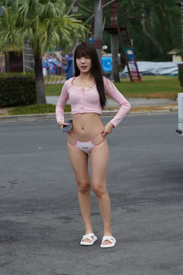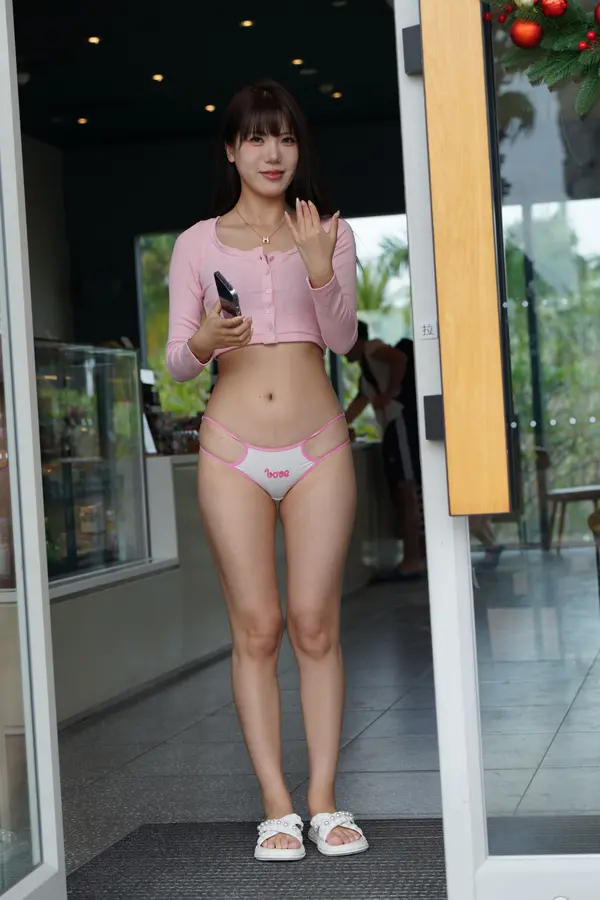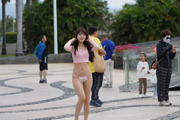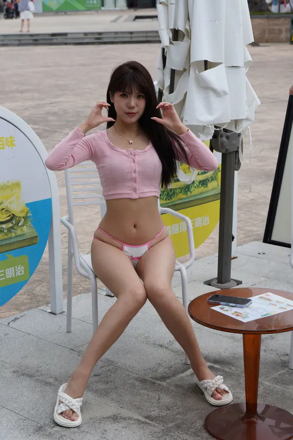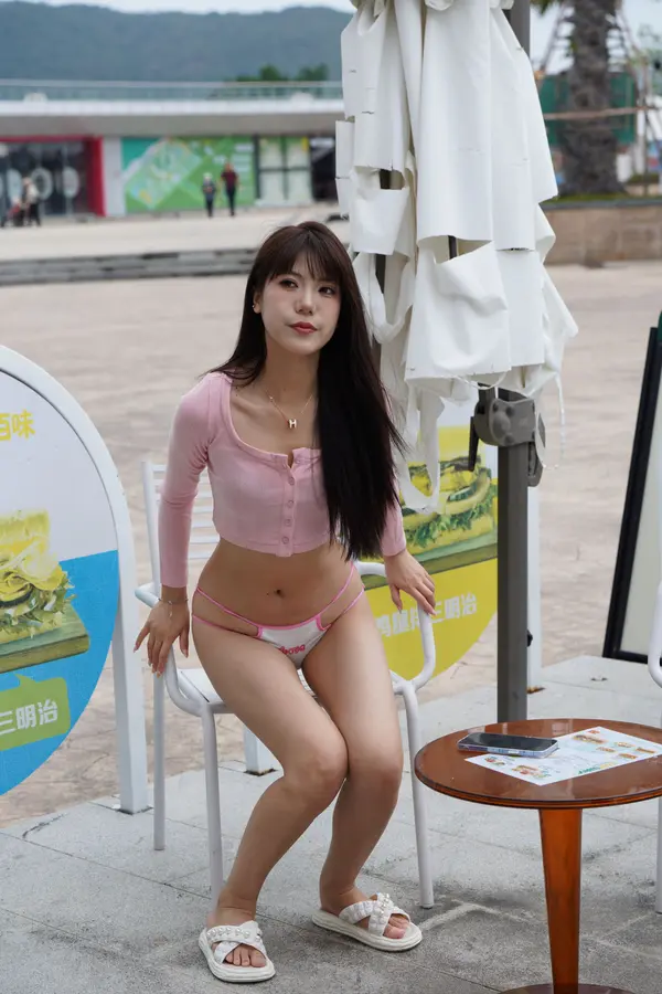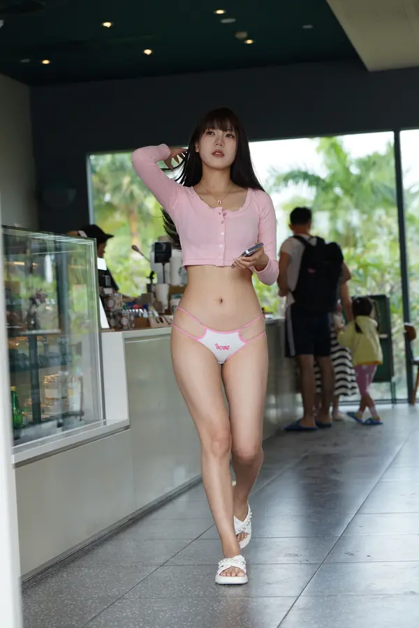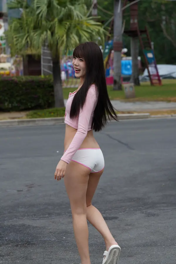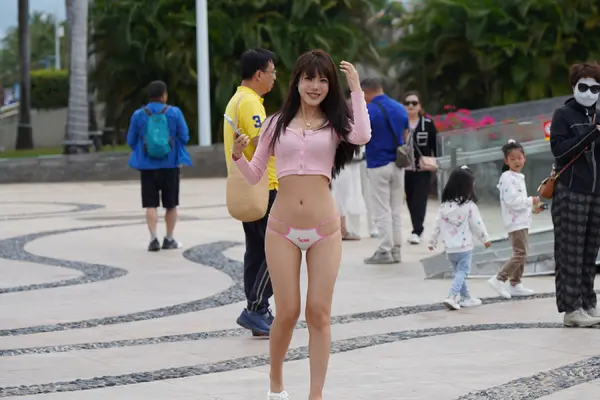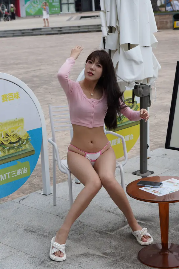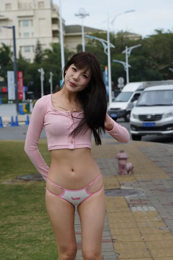 在海边街道穿着内裤逛