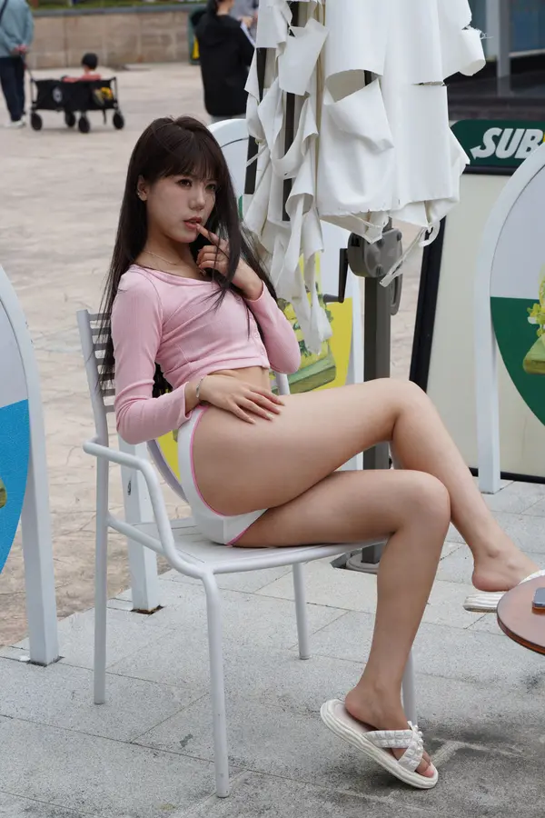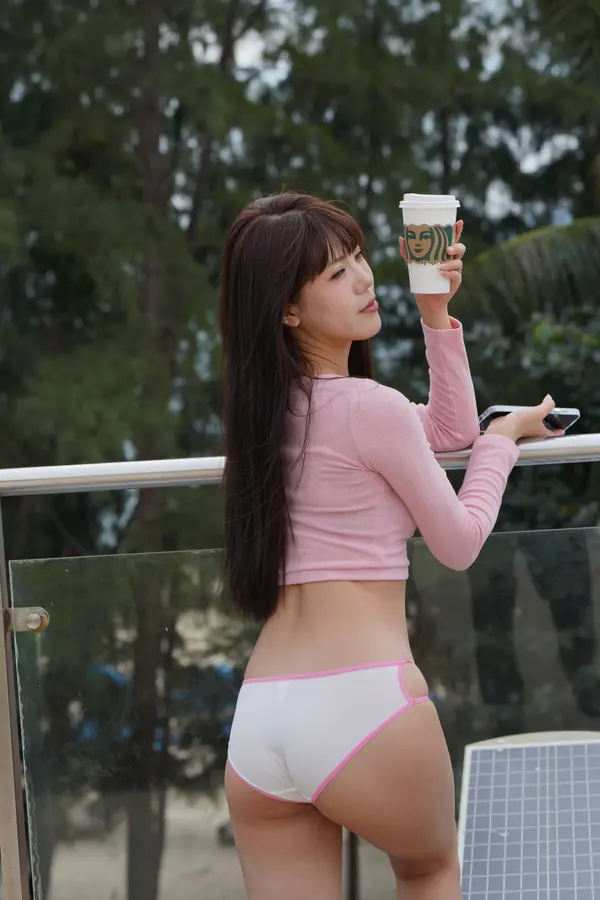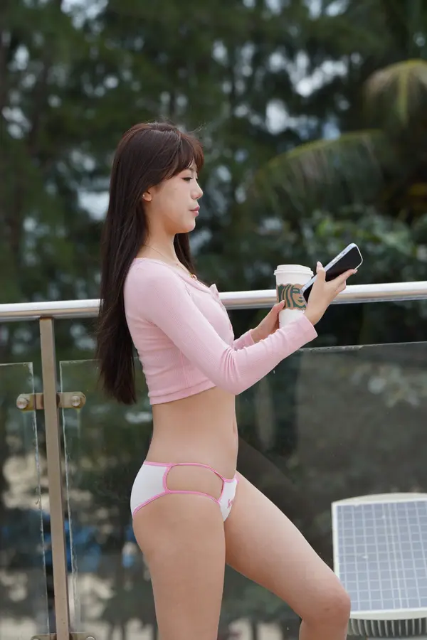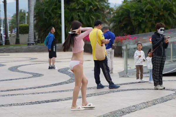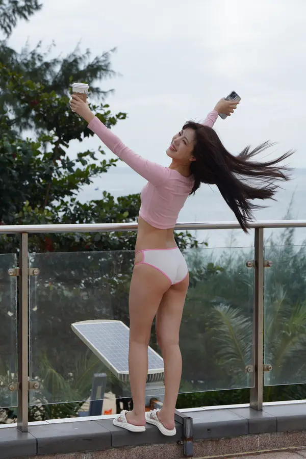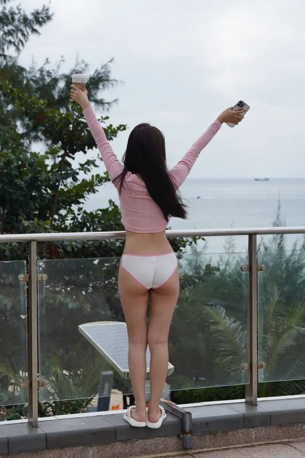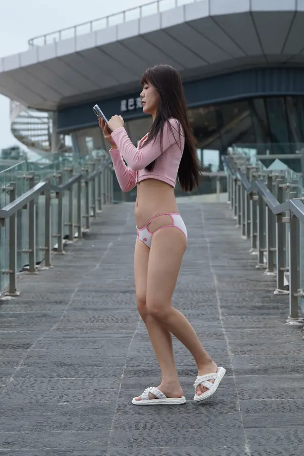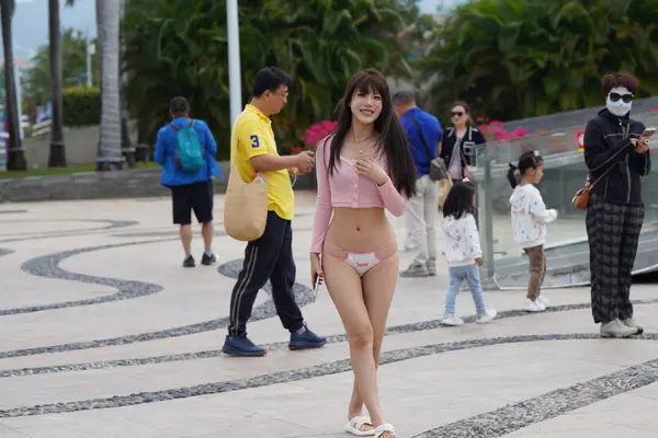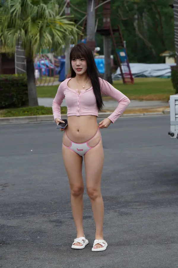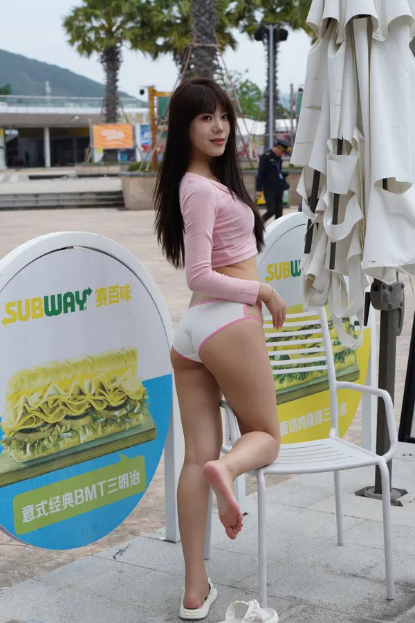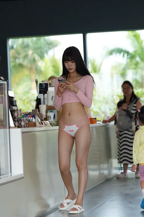 在海边街道穿着内裤逛