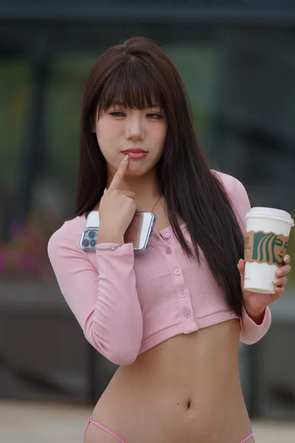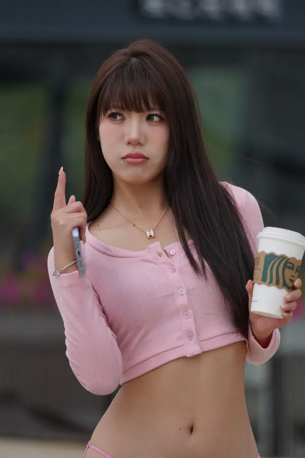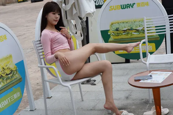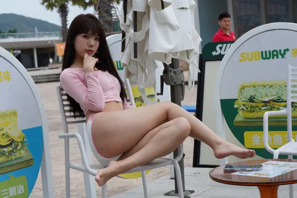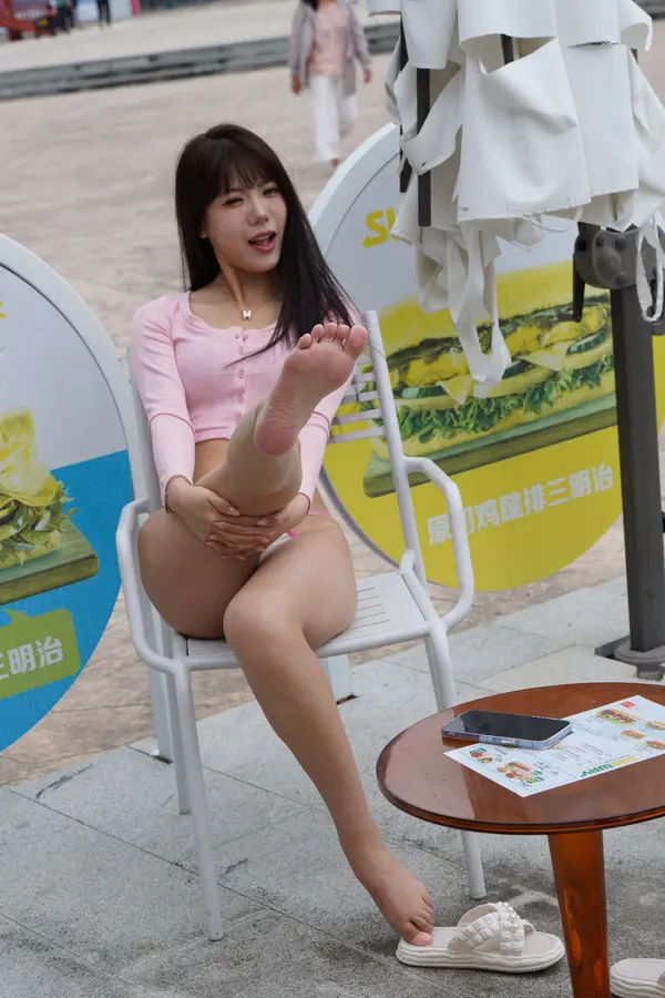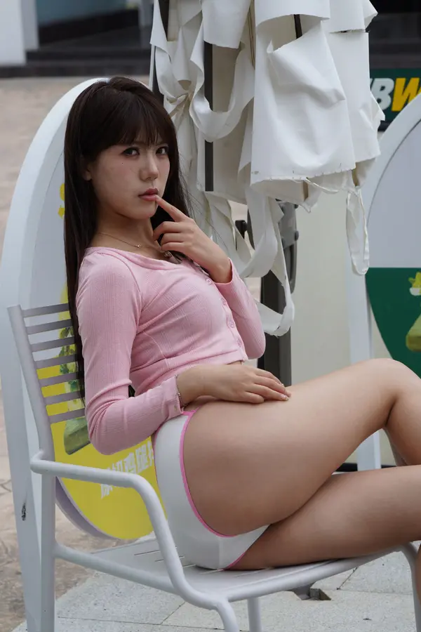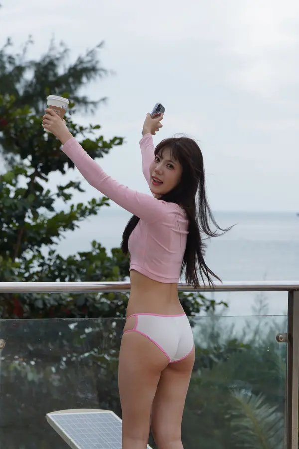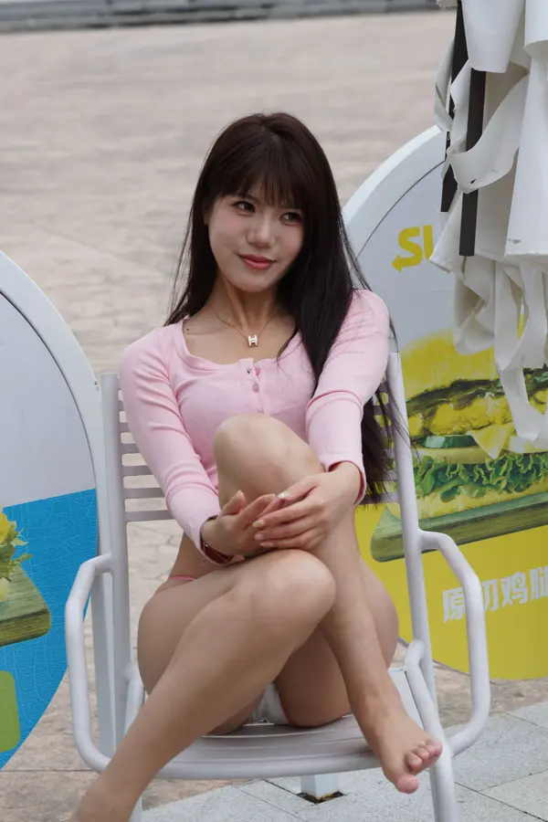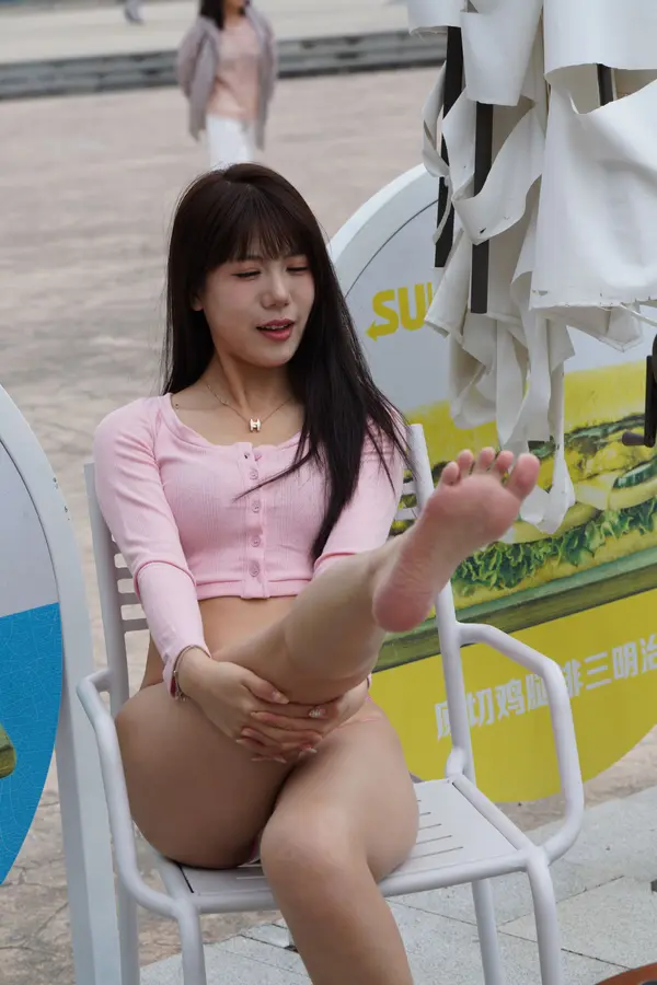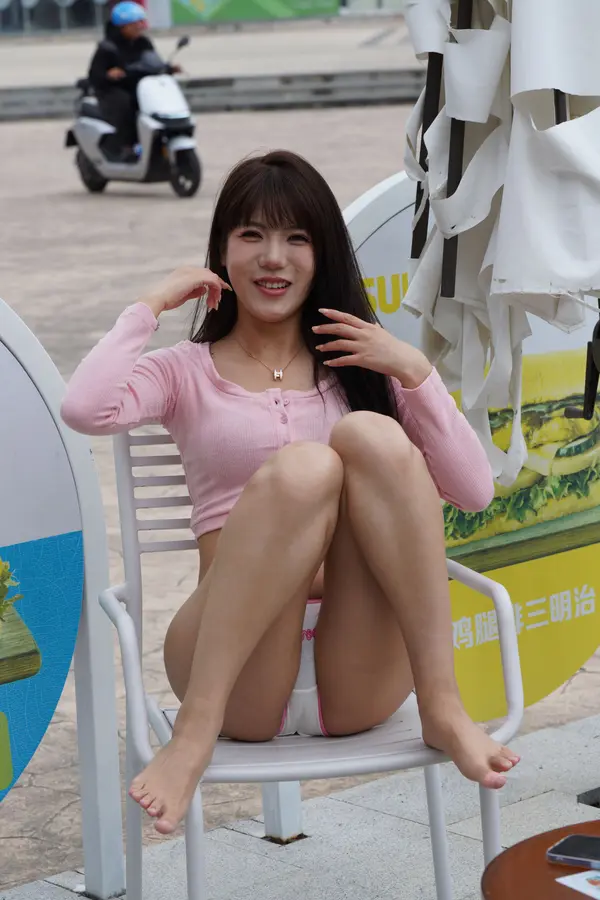 在海边街道穿着内裤逛
