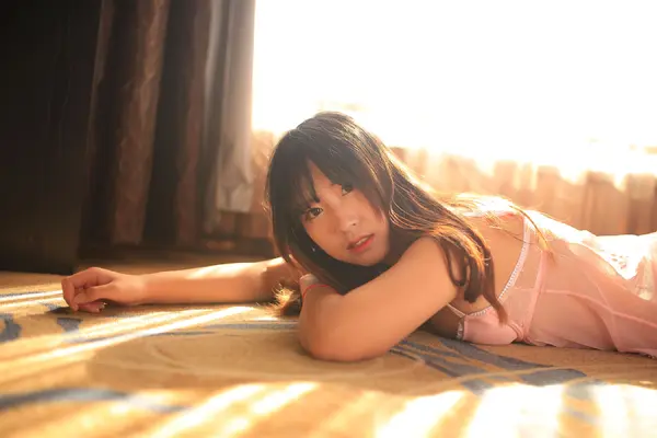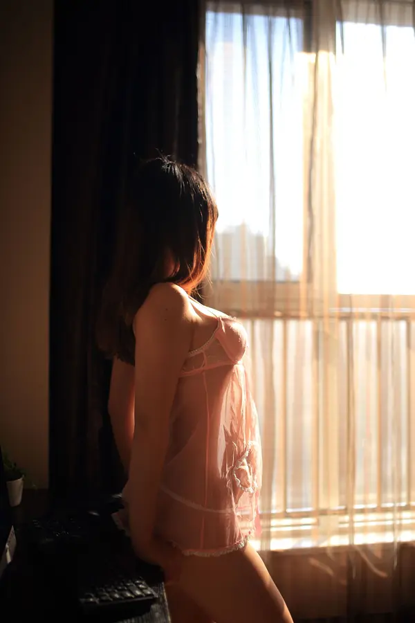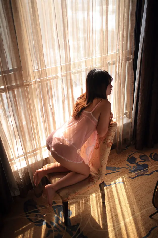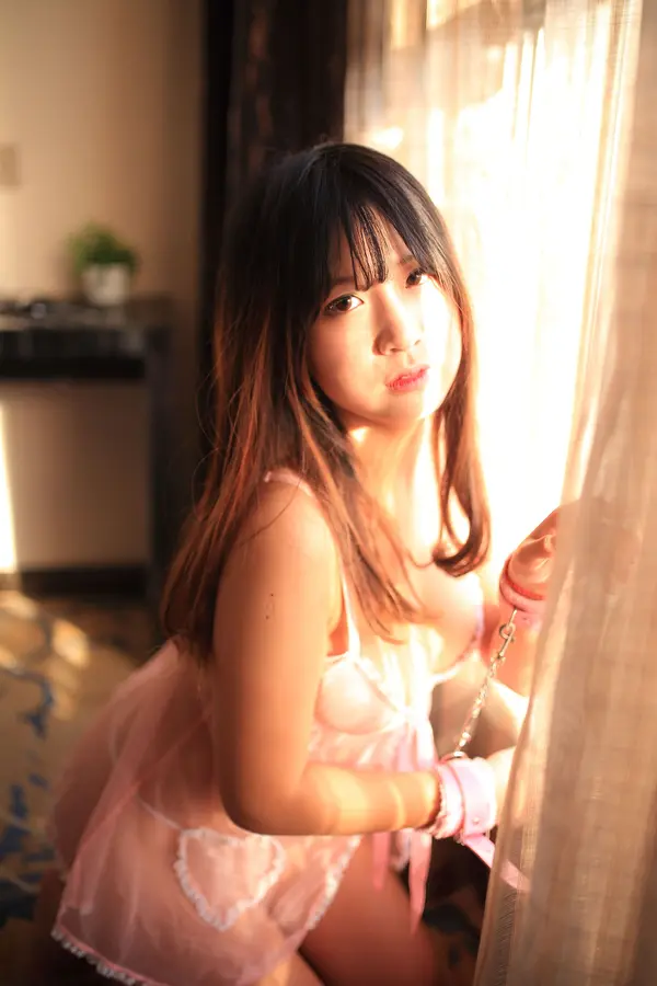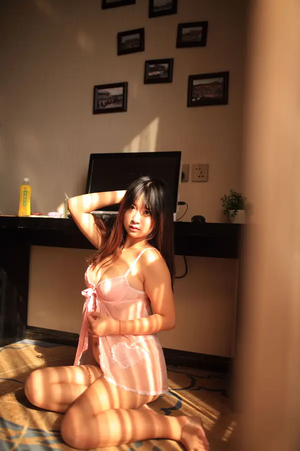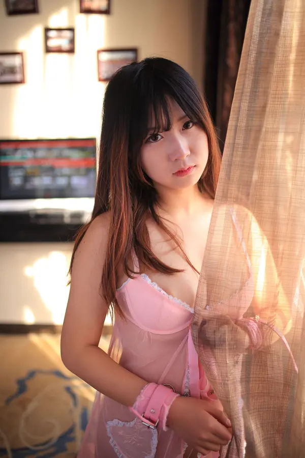 猫九酱《粉色透视睡衣》