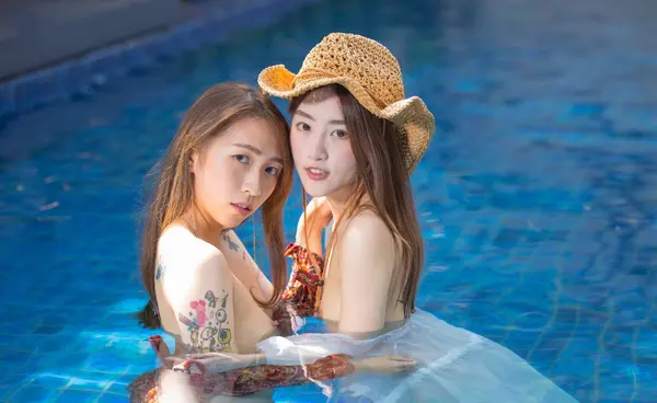福利姬【Annie & LinLin】《双美尻少女vila泳池畔露出》